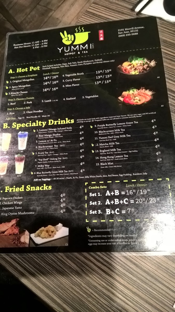 Yummi Hotpot & Tea Menu